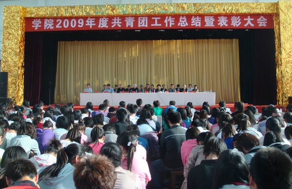 5月12日下午,学院在体育馆召开了2009年度共青团工作总结暨表彰大会。学院董事长、院长完颜弟,常务董事、党委副书记李韫章,党委书记王新兰,党委副书记李玉仓,副院长杨培权,党委书记助理、团委书记马义哈等学院领导出席了会议;学院办公室、党委工作部等部门领导及各系党总支书记、团总支书记、副书记、院系学生会负责学生、团员代表共2000余人参加了会议。会议由学院团委老师主持。