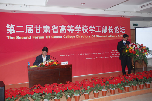6月10日上午,由省高校工委主办、甘肃省农业大学承办的第二届甘肃省高校学工部长论坛在甘肃省农业大学逸夫科技馆隆重开幕。省高校工委领导、在兰高校分管学生工作的领导、全省高校学工部长和辅导员代表共80余人参加了论坛。我院党委副书记李玉仓应邀参加了论坛开幕式。