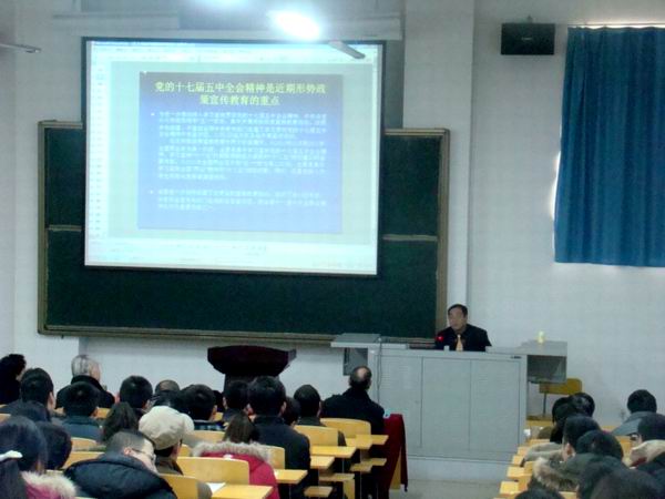 报告会后,王书记强调,学院全体教职员工要坚持把学习贯彻党的十七届五中全会精神和甘肃省十一届十次会议精神作为当前和今后一段时间的一项重要政治任务,一定要结合学院教育教学工作实际,突出重点、领会实质,努力实现思想认识上的新提升;要坚持把学习十七届五中全会精神与开展创先争优活动结合起来,围绕中心、学以致用,为进一步推动学院事业又好又快发展做出新的贡献。