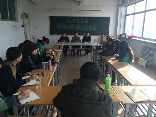 1月9日下午,经济贸易系在4号教学楼313教室召开了师德师风建设座谈会。学院教学总监樊元教授,系主任刘伟,党总支书记康昱明,副主任王媛出席,经济贸易系全体教师和行政人员参加了会议。会议由系党总支书记康昱明主持。
