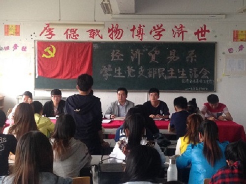 5月14日下午,经济贸易系召开学生党支部民主生活会,系党政秘书兼学生第一党支部书记秦勇、全体学生党员、入党积极分子代表共70余人参加了大会,大会由经济贸易系学生第二党支部副书记牛轲主持。