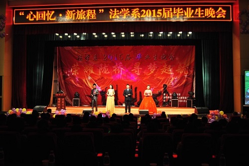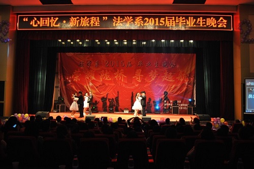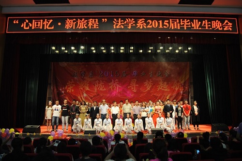 即使岁月流逝,时光也带不走执着的梦;即使天各一方,距离也切不断永恒的校友情。5月24日晚,法学系在学术报告厅举办了“心回忆,新旅程” 2015届毕业生晚会。莅临本场晚会的学院领导有学院董事长、院长完颜弟,执行院长路文江,副院长杨培权,机关相关处室及各系负责人等800余名师生参加了晚会。