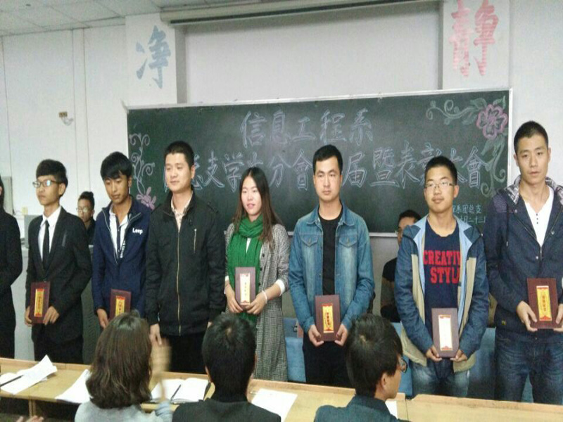 会上,邓超老师宣读了《关于表彰信息工程系2014-2015学年优秀学生干部的决定》,牛应才老师宣读了《关于魏宗仁等同学职务任免的通知》,同时对“优秀学生干部”、“团学工作先进个人”颁发了荣誉证书。接着,优秀学生干部代表金曹娴、李颖元同学分别代表团总支、学生分会进行发言,总结了上一学年团学工作,对新的一届团学组织提出自己的意见和建议,希望团学学生干部树立责任感,扎扎实实推进我系团学工作迈向新的台阶。同时,新一届团总支副书记张琪、学生分会主席魏宗仁同学代表新一届团学组织作了就职发言,就团学工作提出了自己的观点和想法,表示将认真完成我系团学各项工作任务,取得好成绩。