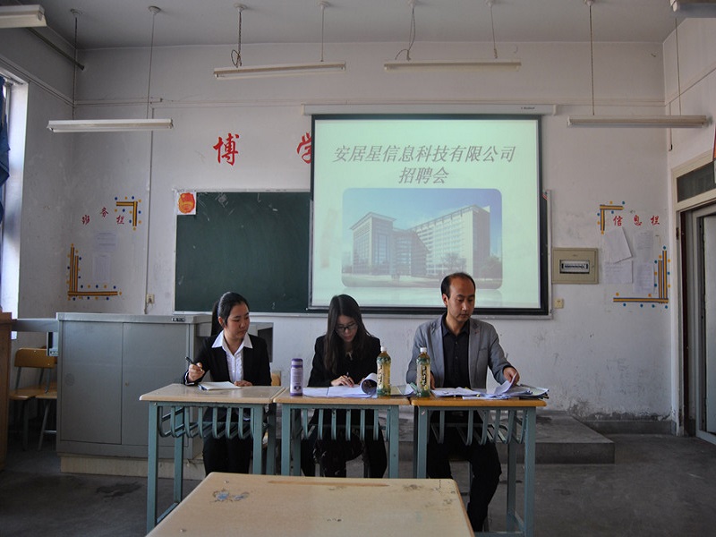 此次活动共模拟7家公司进行招聘。招聘时首先由应聘者上交简历,做自我介绍,接着由老师扮演的面试官进行面试问答,选拔优秀应聘者进入第二轮面试。