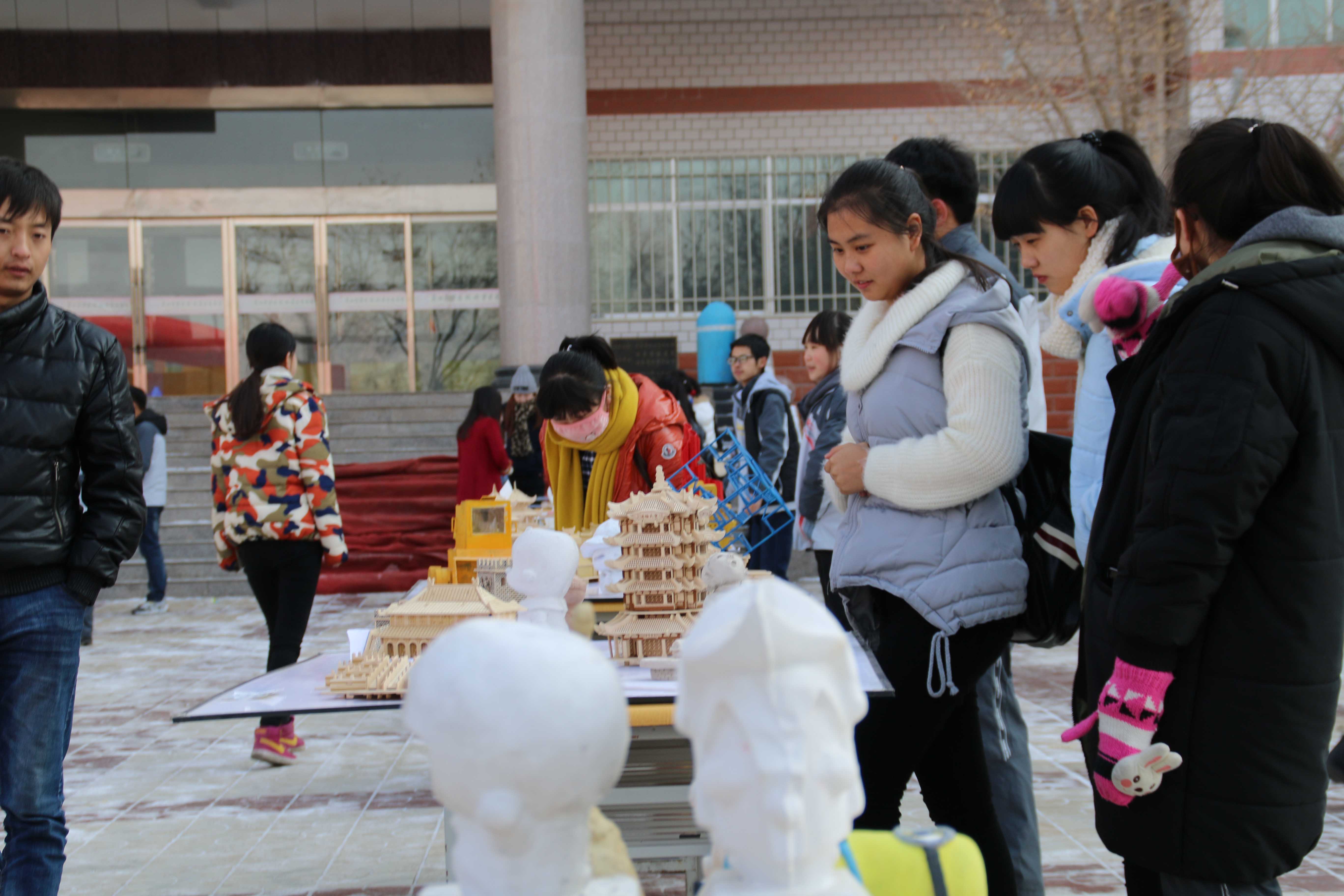 本次习作展共展出了潘侠、孙随太、鲁昭、王立娟、范芸、潘瑶和赵显彬等七位老师所指导的1000余件课堂习作,涉及2012级、2013级和2014级各专业方向学生,展品新颖典雅,各成风格。模型形式多样,美观大方;雕塑栩栩如生,手法厚重;字体设计别致靓丽……吸引了很多师生驻足欣赏,成为冬日校园的一道美景。