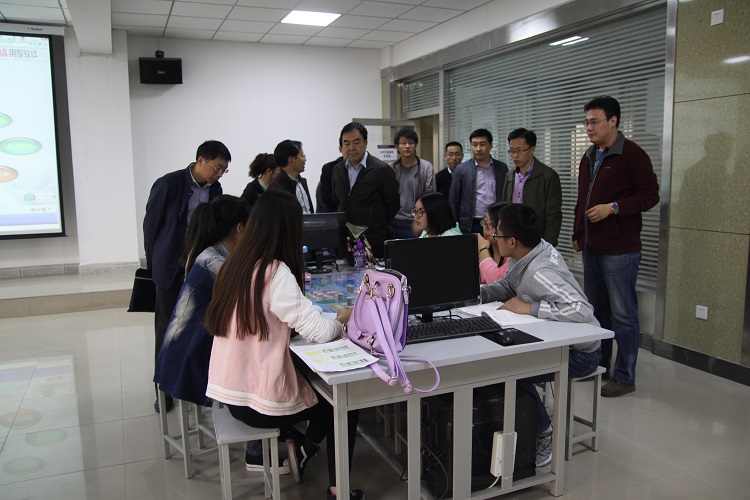 张处长一行首先实地参观了“大商科综合仿实训中心”、“土木工程实训中心”,详细了解了经管类跨专业仿真实训开展情况、实践教学师资情况、实训中心未来发展等情况,并与学生进行了交流。随后,又参观了文化长廊,张处长对我院文化长廊的设计、建设给予了充分地肯定,认为我院的校园文化建设及环境育人氛围营造方面特色鲜明。