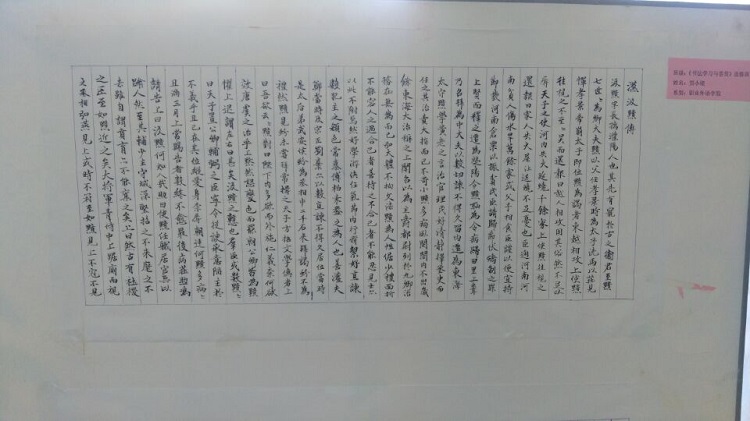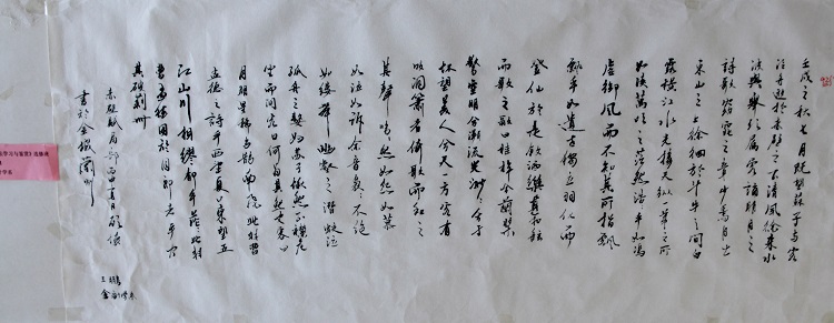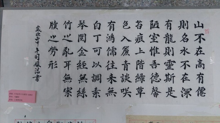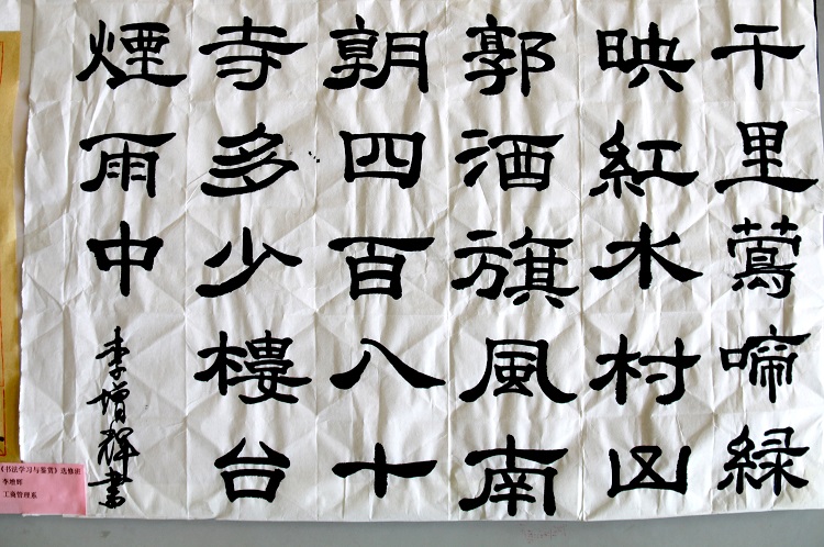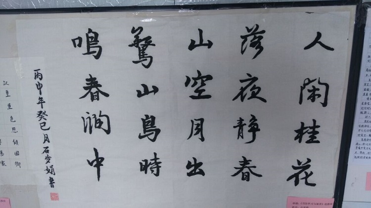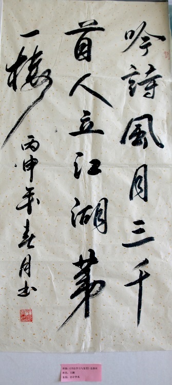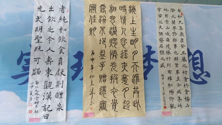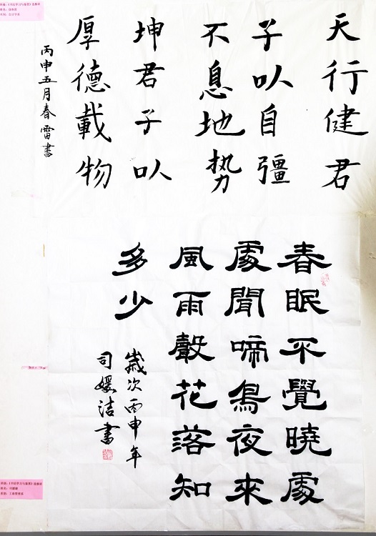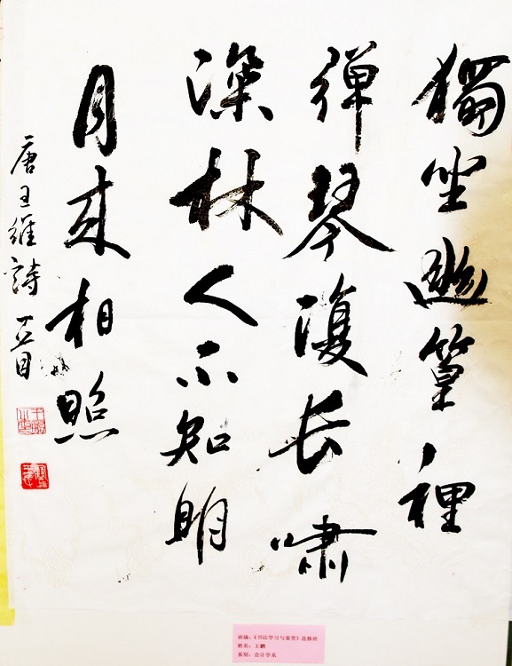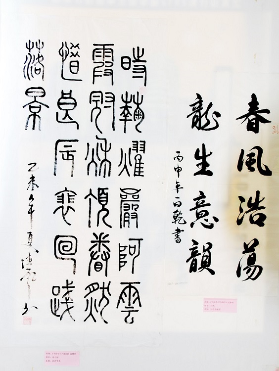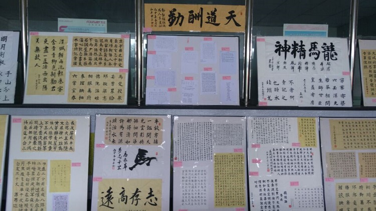 6月1日,2015-2016学年第二学期《书法学习与鉴赏》选修班(第五届)学生作业作品展,在学院图书馆一楼大厅正式展出。本次书法作业作品展出的主题是:“翰墨生辉,弄笔读书怡情;致敬国学,弘扬重建斯文”。