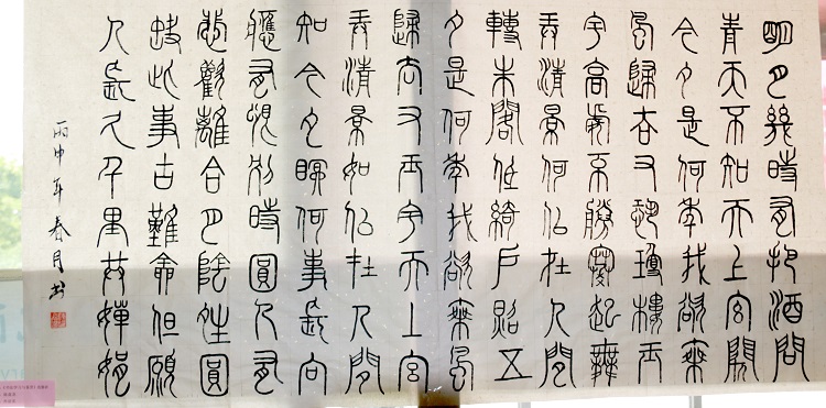 本次共展出学生的平时作业、作品共250多幅,书体以楷书为主,篆、隶、楷、行、草皆备,形式多样,书写流畅活泼,是我院大学生精神境界和思想意趣的具体反映。
