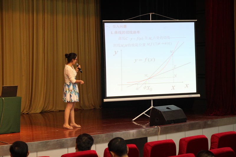 会上,学院还进行了教学观摩活动,由大学数学部巩星田老师作了以《导数的概念》为题目的观摩教学。