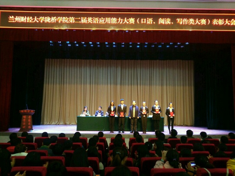 11月17日下午,陇桥学院举行学院第二届英语应用能力大赛(口语、阅读、写作类)表彰大会,并举办英语学术讲座。学院领导、督导组及外国语言文学系负责人出席了大会。学院800余名学生参加了表彰大会并聆听学术报告。会议由副院长高军主持。