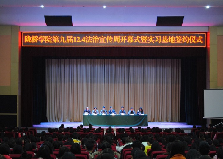 自2008年开始,陇桥学院利用“12.4”法治宣传日,积极推进社会主义法治文化建设,开展丰富多彩的校园法治文化活动,集中开展以宪法为核心的系列主题宣传活动,每年坚持通过举办法治知识讲座、知识竞赛、模拟法庭审判、普法宣传等形式,营造了学院良好的学法、懂法、守法、用法的浓厚氛围。