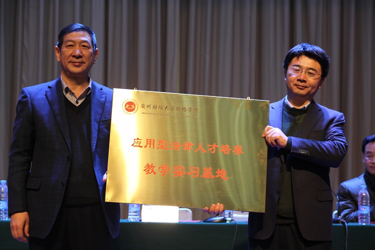 会上,学院党委副书记郇东宣读了《关于举办2016年国家宪法日暨学院第九届“12.4”法治宣传周活动的通知》,法学系主任蒲春平与北京齐致(兰州)律师事务所刘临庆律师签署了应用型人才培养实习基地建设协议,副院长杨培权为北京齐致(兰州)律师事务所授牌。随后,刘临庆律师代表齐致所作了表态发言。副院长杨培权作了总结讲话,他就如何建设法治校园给予了宝贵的意见和建议;同时也为下一阶段的法律专业人才联合培养指明了方向。