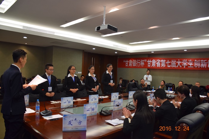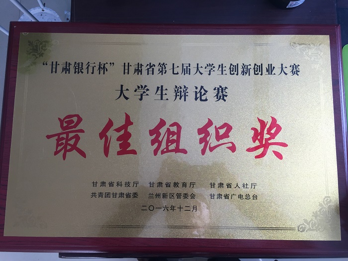 2016年“甘肃银行杯”甘肃省第七届大学生创新创业大赛大学生辩论赛于12月24—25日在兰州新区产业孵化大厦举行,我院获得最佳组织奖,丁倩同学获得最佳辩手。