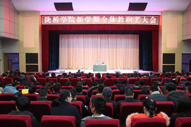 3月5日上午,陇桥学院在学术报告厅召开了全体教职工大会,董事会领导、学院领导及全体教职工参加了会议,会议由党委书记王新兰教授主持。