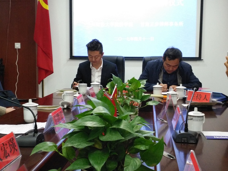 仪式上,甘肃正步律师事务所主任董军翔致欢迎词并介绍了正步所发展的情况,以及未来发展的思路。法学系负责人介绍了法学系的基本情况、卓越法律人才培养的理念及实习实践的思路。副院长高军代表学院作了讲话,表示对于此次校所合作充满信心,学院对于法学系在兰州市外建立第一家实习基地、开拓实习实践新的模式给予厚望,希望正步所与法学系加强沟通、联系,共同为应用型法律人才培养做贡献。