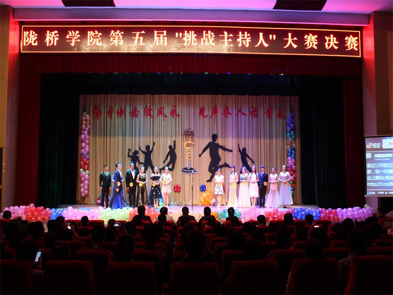 5月7日晚,由院团委主办,经济贸易系承办的第五届“挑战主持人”大赛决赛在学院学术报告厅举行。出席本次活动的嘉宾有学院党委副书记郇东、副院长高军、经济学教学总监樊元教授、团委负责人、财政金融系团总支书记及经济贸易系全体教师。来自各系的14名选手通过初赛、复赛后最终进入本次决赛。