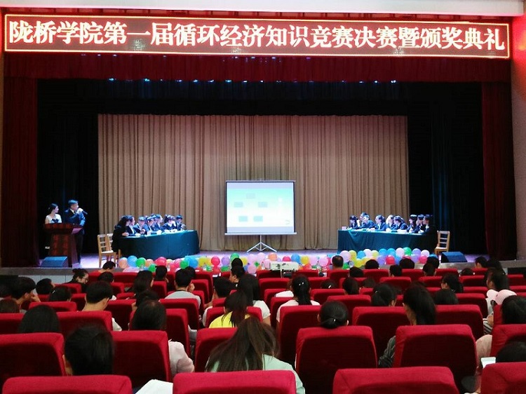6月16日下午,陇桥学院第一届循环经济知识竞赛决赛暨颁奖典礼在学术报告厅举行,学院副院长燕宏,甘肃省高校区域循环经济重点实验室负责人,重点实验室学术委员会委员等应邀出席并担任了现场评委。学院相关教师和经管类专业学生共计800人观看了本次比赛。