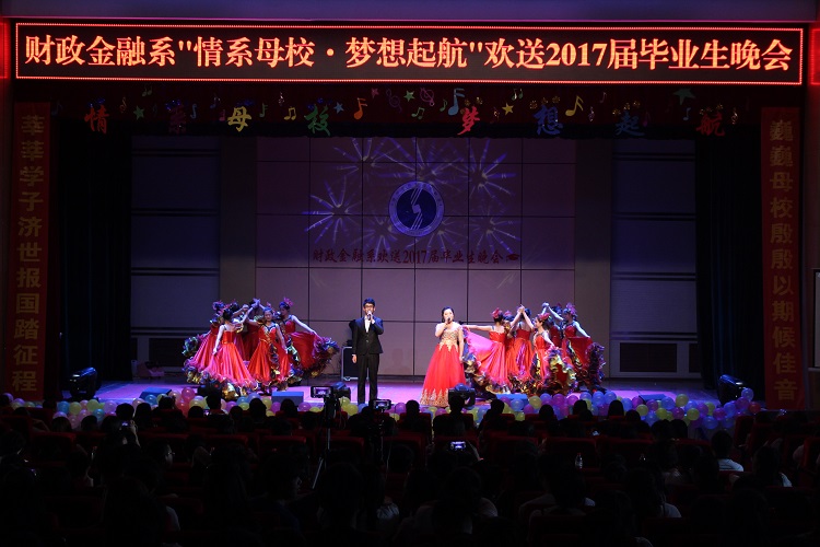 晚会伊始,精心录制的送别毕业生视频吸引了全场观众的目光,随着学院校园优美风景的全景式展现和校园点点滴滴的镜头再现,现场毕业生的回忆又被拉回到了四年间那些难忘时刻。随后,财政金融系主任代表系上向毕业生致辞,祝愿毕业生在工作岗位上取得优异成绩,希望毕业生感恩母校,常回来看看。