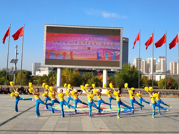 10月28日-29日,由兰州市体育局主办,兰州市全民健身指导中心、兰州广播电视台综艺体育频道、兰州市各区县文体局承办的“我们的节日·重阳节”“舞动金城”2017年兰州市首届广场舞大赛在兰州体育公园成功举办。来自兰州市各县区34支代表队的600余名广场舞健身者齐聚母亲河畔,欢度重阳佳节,共展健康风采。