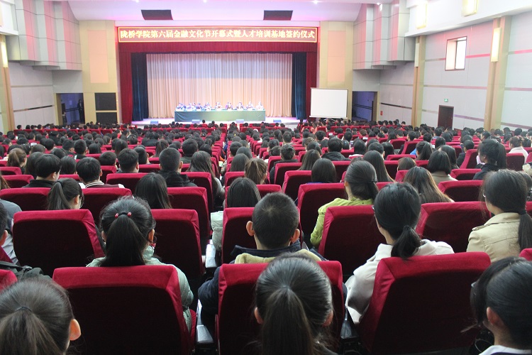 会上,副院长燕宏首先宣读了《关于举办陇桥学院第六届金融文化节的通知》(陇桥教发[2017]92号)文件。接着,副院长高军与国泰君安股份有限公司甘肃分公司业务总监宋峥、西南证券兰州南昌路证券营业部吴海经理、中国银行兰州西关什字支行行长柳静分别签订了“教学实习就业基地共建协议书”。随后,签约企业负责人分别作了讲话。最后,副院长高军做了总结讲话,他就实训基地对教学和学生实践能力提高所发挥的作用进行了充分肯定,并对学生如何充分利用机会提高自己的专业实践能力进行了指导并提出了希望。最后,他宣布陇桥学院第六届金融文化节正式开幕。