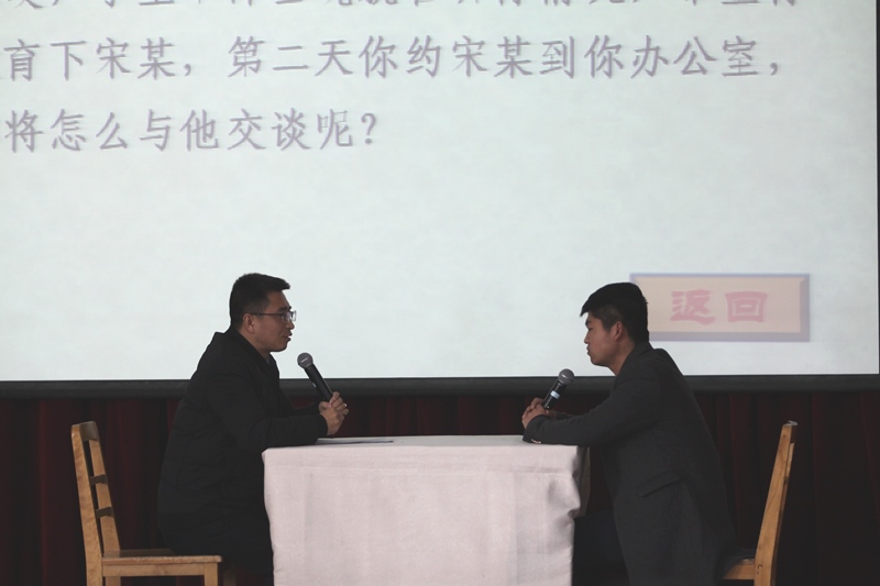 随后,学院院长路文江在赛后做了重要讲话。首先,他对此次大赛所表现出以赛代训的效果给予了充分肯定,路院长指出,此次大赛体现了辅导员积极的工作态度、扎实的理论基础和较为丰富的工作经验,是辅导员之间相互交流与学习的一个很好的平台;其次,路院长强调,此次大赛展现了学院辅导员对职业的热爱、对学生的热爱,也是学院思政队伍风采的一次集中展示;最后,路院长对于辅导员职业能力的提高和个人发展表达了更多的期望,他强调,要进一步加强辅导员教师化、职业化、专业化建设,使辅导员与学生共成长,与学院同发展。