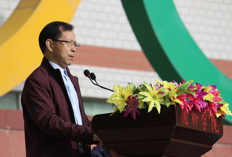 田径场上,彩旗飘飘,欢声雷动。伴随着激昂的进行曲,国旗护卫队、彩旗方队、运动员方队、教工方队等在内的14支队伍迈着矫健的步伐依次走过主席台。他们步伐坚定有力、动作整齐划一、口号个性鲜明,表现出陇桥师生阳光向上、奋勇拼搏的精神面貌。方队入场完毕后,学院院长路文江教授致开幕词,他预祝本届运动会取得圆满成功,希望全体裁判员树立安全第一意识,公正判决,为各项竞赛创造良好的工作氛围;希望全体运动员赛出风格、赛出水平,胜不骄、败不馁,并向为此次大会付出辛劳的全体人员表示衷心的感谢。