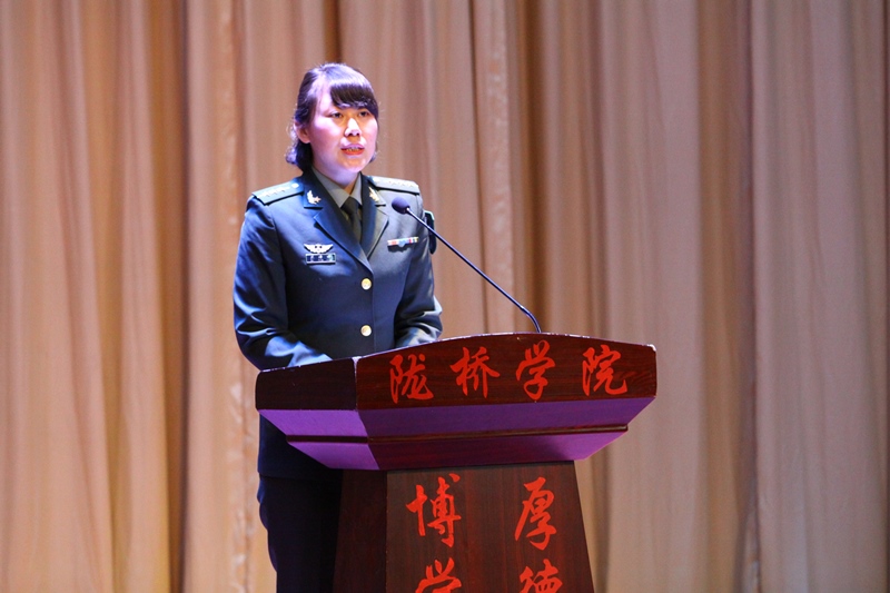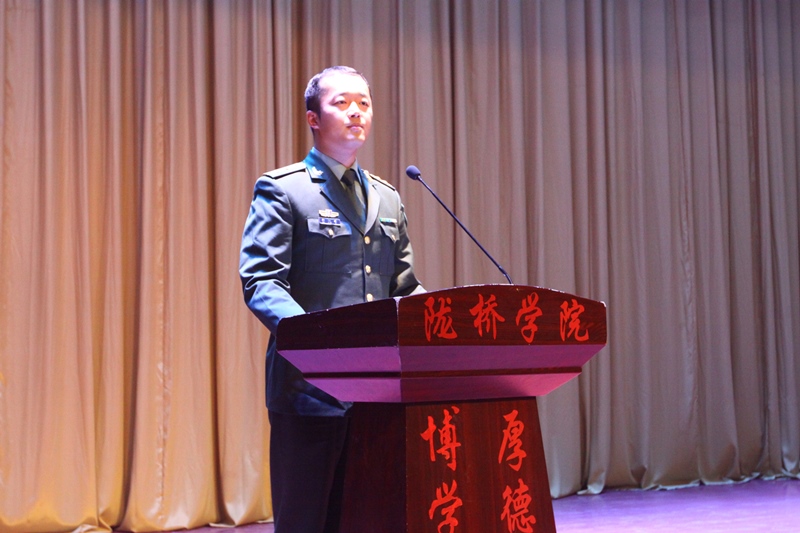 为深入贯彻习主席给南开大学新入伍大学生回信精神,进一步强化大学生国防观念,激发大学生参军入伍热情。4月25日下午,由省政府征兵办、省教育厅共同主办的“甘肃省大学生士兵典型进高校巡回宣讲活动”在学院学术报告厅隆重举行。兰州警备区动员处处长张明春、兰州财经大学国防教育办公室主任拜伍旭、城关区人民武装部部长李岁劳、城关区人民武装部政委郝修杰、兰州警备区动员处参谋尤洋、学院副院长杨培权出席了会议,各党总支负责人、辅导员老师和800余名学生代表参加了会议,大会由学院党委副书记、学生处处长郇东主持。