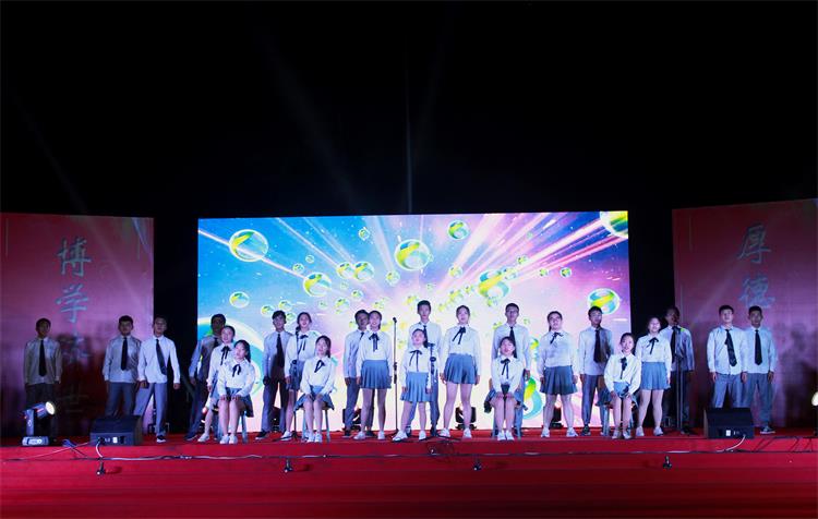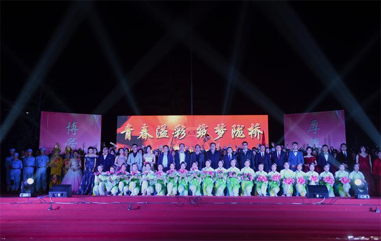 晚会结束后,董事会领导、学院领导与全体演职人员合影留念。