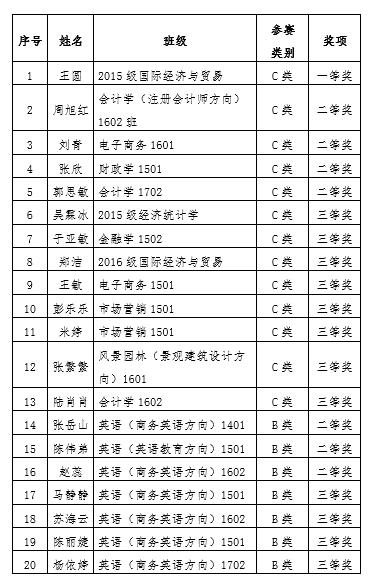在2018年全国大学生英语竞赛(NECCS)中我院学生获多个奖项,其中王圆同学获非专业组省级一等奖,其他获非专业组二等奖4项,三等奖8项;专业组二等奖3项,三等奖4项;胡晓梅老师获得优秀指导教师奖,学院获优秀组织奖。