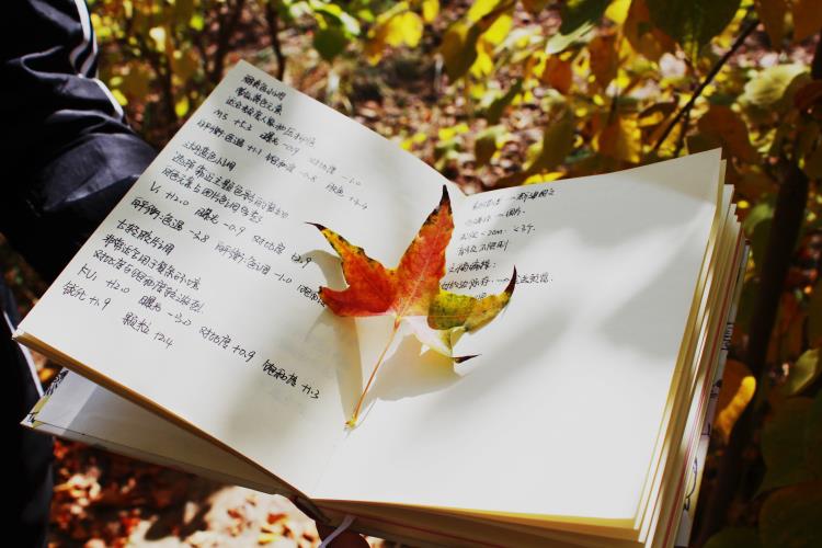 被头顶忽然的落叶而停顿,把它小心收进书中的样子!