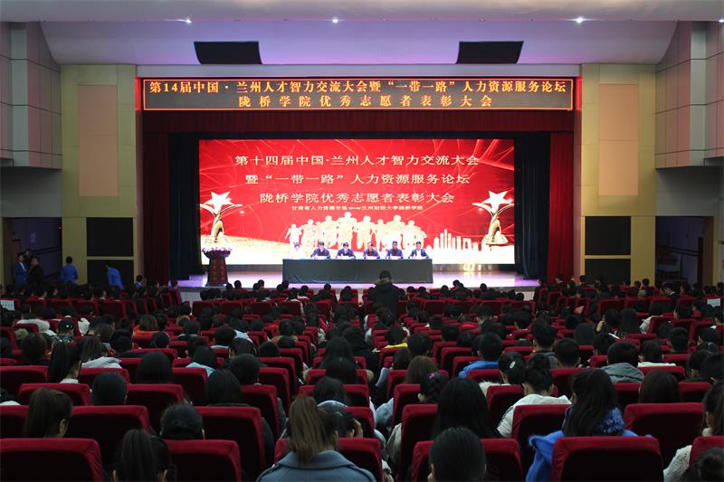 11月23日下午,省人力资源市场联合陇桥学院在学术报告厅隆重举行第14届中国兰州人才智力交流大会暨“一带一路”人力资源服务论坛优秀志愿者表彰大会。省人力资源市场姚红军主任、市场交流部韩国天部长、钱惠丽老师应邀出席会议,陇桥学院院长路文江、党委副书记郇东、各系就业工作领导小组、毕业班辅导员、学生代表参加会议。会议由就业指导中心主任梁磊同志主持。