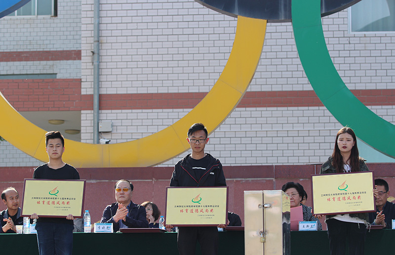 闭幕式在嘹亮的国歌声中拉开帷幕,总裁判长南萍副教授宣读了各单位最终比赛成绩及获奖名单:经济贸易系获得教工团体总分第一名,财政金融系、信息工程系分别位列第二名、第三名;会计学系获得学生团体总分第一名,财政金融系、工商管理系分别位列第二名、第三名;土木工程系、经济贸易系、信息工程系获得“优秀组织奖”;法学系、艺术设计系、外国语言文学系获得“体育道德风尚奖”;土木工程系获得团体操表演一等奖,会计学系获得二等奖,工商管理系、财政金融系获得三等奖。董事长完颜弟研究员、常务董事李晓光同志、常务董事陆昀同志等学院领导为获奖单位进行了颁奖。