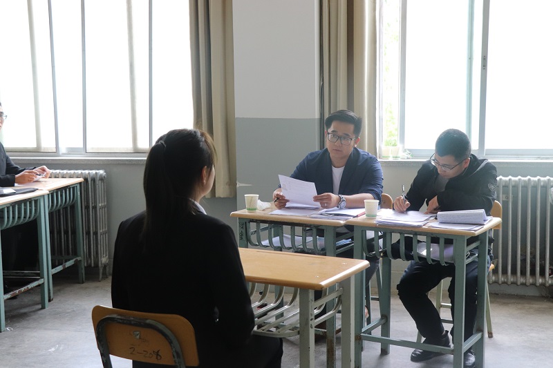 面试环节设计学生自我介绍、专业知识问答、面试中常见问题回答,以考察学生语言表达能力、临场发挥能力、专业素养能力以及职业认知能力,通过不同学生的回答表现,定制个人改善意见,并在考试过程中设计总结环节,为学生进行团体辅导,给予即将走入职场的大学生中肯建议和指导,并为学生做好心理辅导,调整心态适应职场。