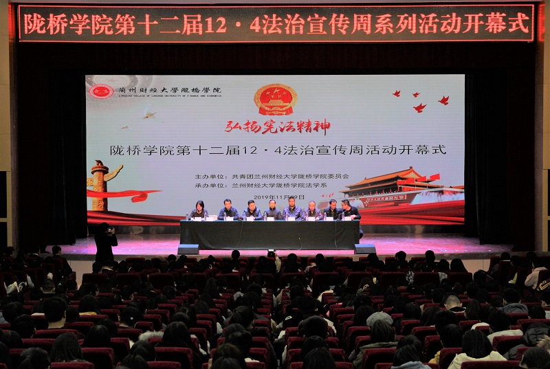 在第六个国家宪法日来临之际,为积极响应国家宪法日宣传活动,陇桥学院第六个国家宪法日宣传暨第十二届12·4法治宣传周系列活动于2019年11月29日在学术报告厅举行开幕仪式。出席本次开幕式的领导有学院院长路文江教授、甘肃省司法厅李冬青处长、学院党委副书记兼副院长马义哈同志、学院党委副书记郇东同志、学院副院长燕宏副教授、法学系领导班子成员。开幕式由法学系党总支副书记晋如意同志主持,学院各系师生代表也参加了本次活动的开幕式。
