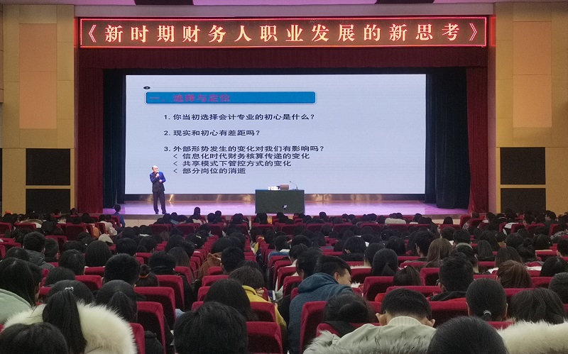 聘任仪式结束后,客座教授华龙证券股份有限公司财务总部副总经理熊勇在学术报告厅以《新时期财务人职业发展的新思考》为题面向学生做了主题报告。与此同时,其他客座教授在博学楼一楼会议室参加了“会计学系人才培养客座教授研讨会”,王生林教授和会计学系领导及教研室主任与各位专家面对面交流了人才培养问题,大家畅所欲言,讨论热烈。