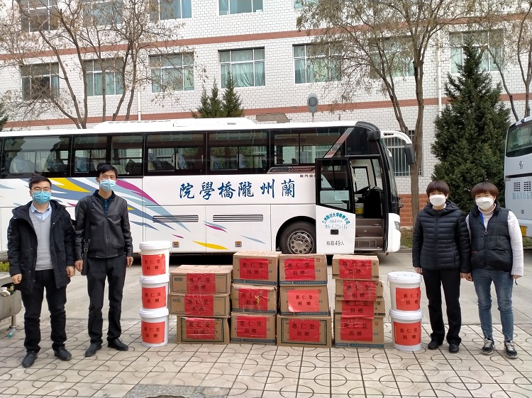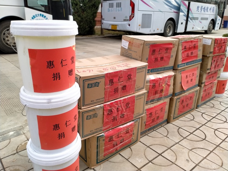 3月27日上午,兰州惠仁堂药业连锁有限公司向我院捐赠了84、碘伏消毒液和氧化氢抑菌洗液等防疫物资,助力学院疫情防控工作。王渊涛副院长代表学院对兰州惠仁堂在防控疫情的关键时刻给予的支持和帮助表示感谢。