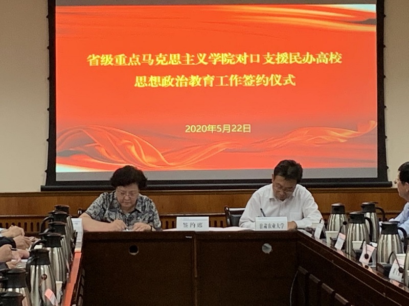 5月22日下午,由省委教育工委主办的省级重点马克思主义学院对口支援民办高校思想政治教育工作签约仪式在兰州大学举行,省委教育工委专职副书记张晓东出席签约仪式,对口支援高校分管校领导和马克思主义学院院长,受援高校董事长、党委书记、思政教学部主任参加签约仪式,我院董事长完颜弟、党委书记王新兰、副院长燕宏参加。