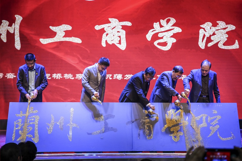 全体董事会领导精神抖擞的走上主席台,来到鎏金沙启动台旁边,缓缓倒出手中的金沙,“兰州工商学院”六个遒劲有力,令人备受期待的大字,逐一显现,现场人员全部起立,以热烈的掌声和激动的心情,共同点亮了兰州工商学院的美好明天。