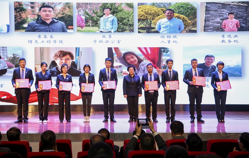 校长完颜弟研究员为获得“突出贡献奖”的同志颁奖,党委书记王新兰教授为获得“敬业奖”的同志颁奖,执行校长路文江教授为获得“优秀团体”的部门颁奖。