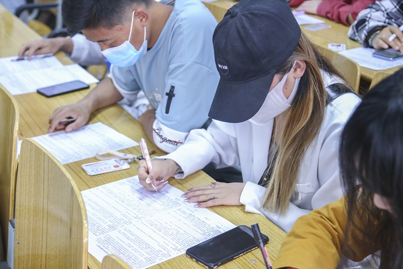 疫苗接种现场,同学们遵照规定的时间分批次到达接种点排队等候。在志愿者的指引下,需经核验证件、测量体温、健康申报、医务人员询问、信息登记等环节完成后,方可来到接种区接种疫苗,并按照要求前往留观区留观30分钟后方可离开。