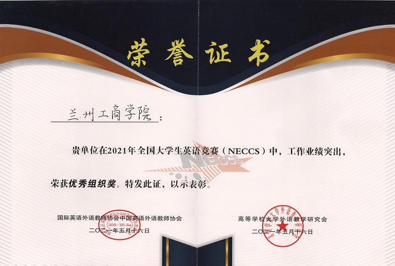 2021年全国大学生英语竞赛(NECCS)甘肃赛区兰州工商学院获奖名单(摘录)