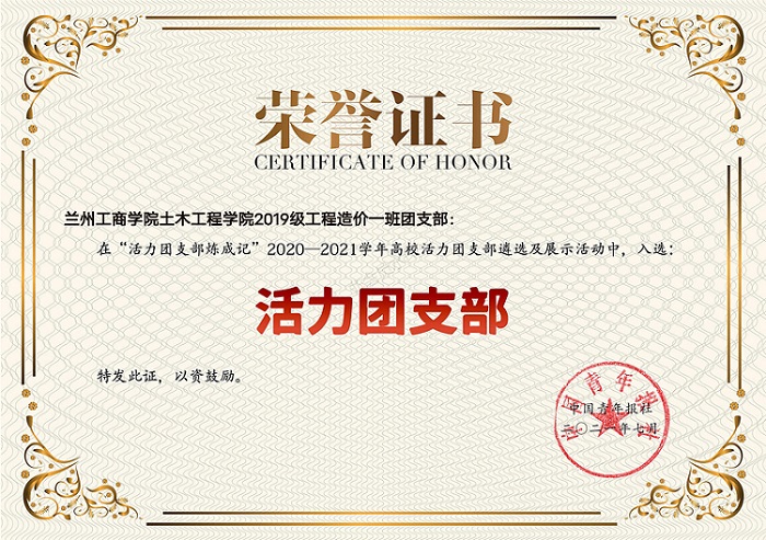 近日,团中央指导开展的2020-2021学年高校活力团支部遴选及展示活动圆满结束。全国1600所高校通过新媒体方式集中展示了在“党史学习教育”等方面的团支部建设成果和典型经验,1100万人次参与网络点赞。经校级申报、省级初评、展示点赞、全国终审等环节,我校土木工程学院2019级工程造价一班团支部脱颖而出,获评全国高校“活力团支部”。