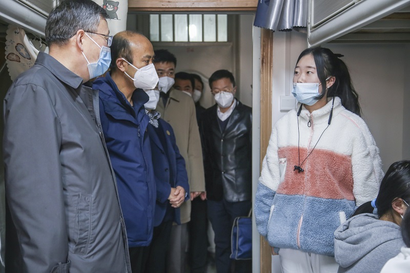 王嘉毅实地调研了高校学生宿舍、食堂、校园超市等防控重点区域,详细了解学校人员排查、封控管理、线上教学、错峰就餐安排、物资储备等疫情防控措施落实情况。他强调,要坚持不懈、持之以恒,进一步压实疫情防控工作责任,做到各项防控措施不松劲,守牢校园健康安全防线。要加强研判,精准施策,科学管控,持续做好校园重点区域和环节疫情防控工作。要精心设计线上教学,保证教育教学活动平稳进行。要做好校园服务保障,加强后勤管理和物资储备。要充分发挥高校党建和思政阵地优势,进一步加强与学生的联系交流,强化人文关怀和心理疏导,确保师生身心安全和健康。