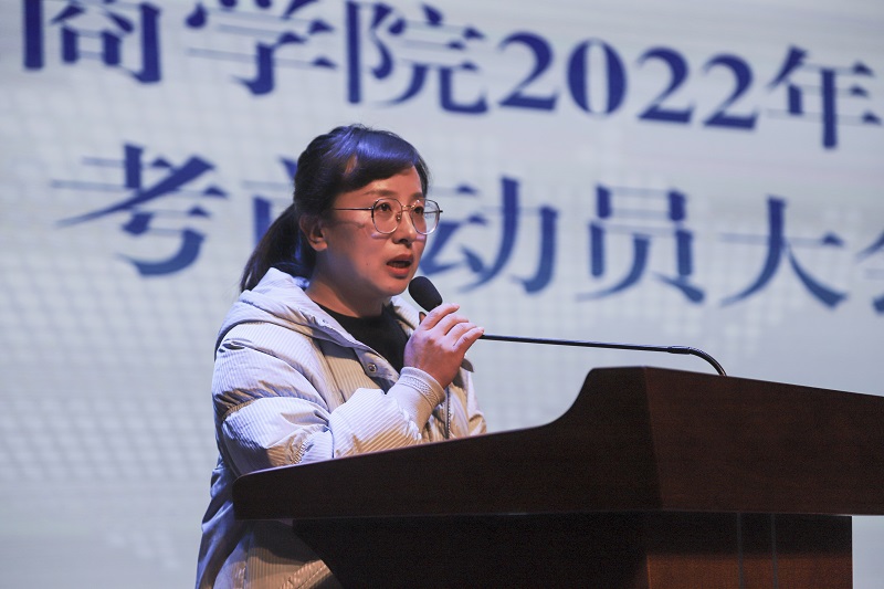 会上,2022年考研学子,会计学院会计学(注册会计师方向)1802班赵燕同学作了发言,她代表全体考研学子做了庄严承诺,表达了考研学子必胜的信心,也感谢学校的鼎力支持和老师们的一路陪伴。