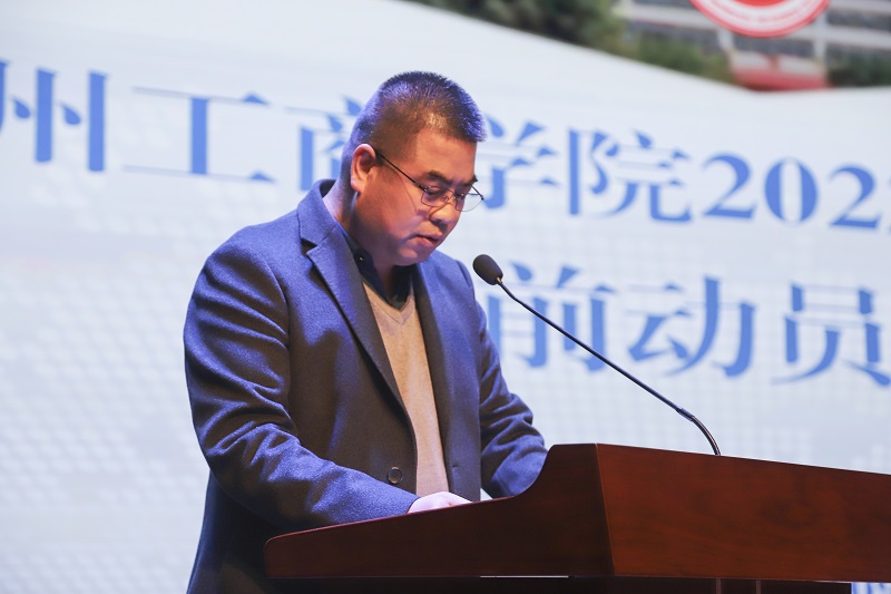 最后,副校长马义哈代表学校做了考前动员讲话。马校长在讲活中对同学们一年的辛苦付出给予了充分的肯定,并从学校提供的诸方面考研服务保障出发,表达了学校对考研工作的高度重视和对考研学子全方位、细致入微的关怀和保障。同时,马校长勉励全体考研学子:一是要始终坚定“一个信念”,即必胜的信念;二是要努力突破“三个瓶颈”,即打破“基础不牢的束缚”、改变“答题习惯差”的不良习气、战胜“考前的焦虑和畏惧心理”;三是要坚决做到“四个拥有”,即拥有明确的奋斗目标,拥有积极的进取精神,拥有科学的学习方法,拥有永恒的坚持不懈;四是要永怀感恩之心,打好学校的宣传名片,将兰工商全员参与、砥砺奋进、永不言弃、自强不息的考研精神一届一届的传承下去,发扬光大。最后,马校长鼓励全体考研学子要全力以赴,以中流击水、浪遏飞舟的勇气,以独占鳌头,舍我其谁的霸气,决胜考研路。
