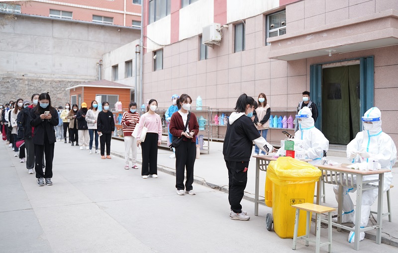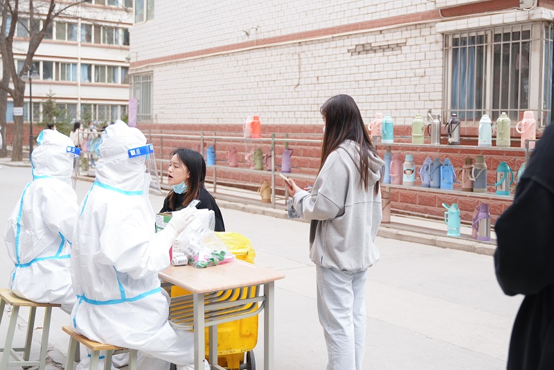 学校设置了12个采样点,组织学生以宿舍楼为单位,采取有序排队,保持安全距离,全程佩戴口罩,扫码登记,实行出入口分离,采样后迅速离开等措施,保障采样工作的规范性和安全性。师生员工坚决服从安排,积极配合学校开展咽拭子核酸检测采样工作。医务人员和全体工作人员付出了艰辛的努力,确保了核酸检测工作高效有序进行和顺利快速的完成。这不仅彰显了兰工商师生对自己、对同学、对同事高度负责任的态度和意识,也展现了师生员工同心疫情的坚决信心。