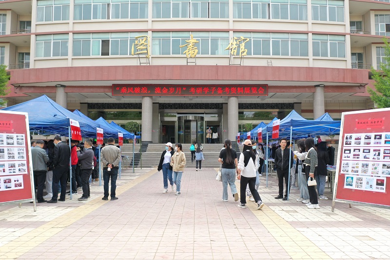 由学业与职业能力发展处主办,图书馆、数据运维中心和各二级学院承办的“乘风破浪,流金岁月”—考研学子备考资料展览会于5月15日在图书馆前广场成功举行。