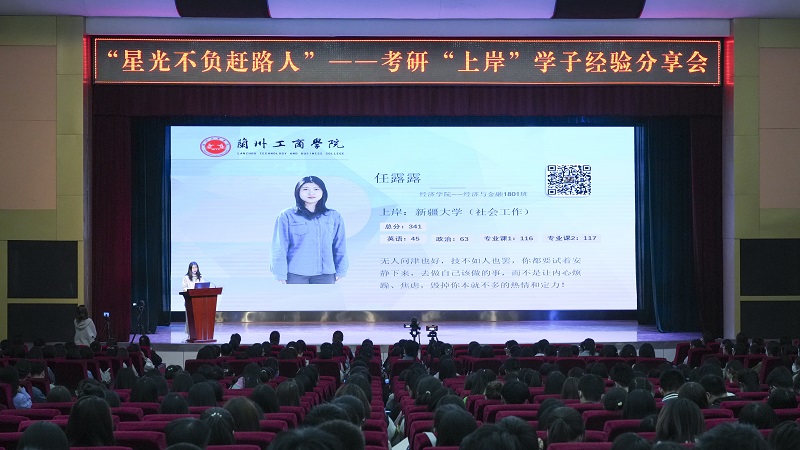 学校考研经验分享系列活动的举办,即是考研上岸学子备考经验的总结和分享,也是考研“学缘”对接的重要平台,更是兰工商考研精神永续传承的重要载体,希望全体学生在学校考研精神的永续传承和接力奋进中,有更多更优秀的学生实现考研梦,推动学校考研录取率的大幅度提升。