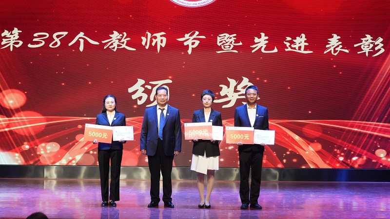 庆祝教师节表彰大会在庄严的国歌声中拉开帷幕。