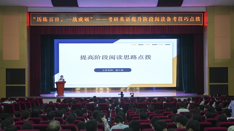 阅读模块在考研英语总分100分中占了一半的分值,是英语备考的重中之重,结合当前我校考研学生在英语模考中暴露出来的问题以及阅读模块的复习备考情况,根据学校2023届学生考研工作整体推进计划和安排,学业与职业能力发展处于2022年9月15日下午在学术报告厅举办了“历练百日,一战成硕”——2023考研英语提升阶段英语二阅读备考技巧点拨专题辅导讲座。本次讲座由学业与职业能力发展处考研英语教学团队康小燕老师主讲,全校2023届考英语二科目的700余名考研学子参加了此次专题讲座。